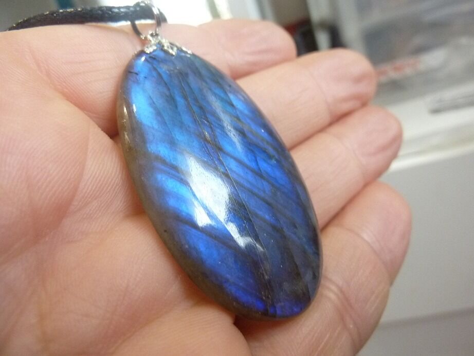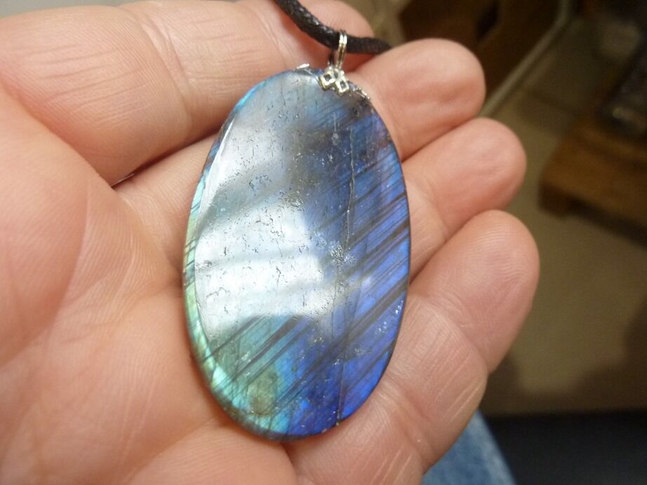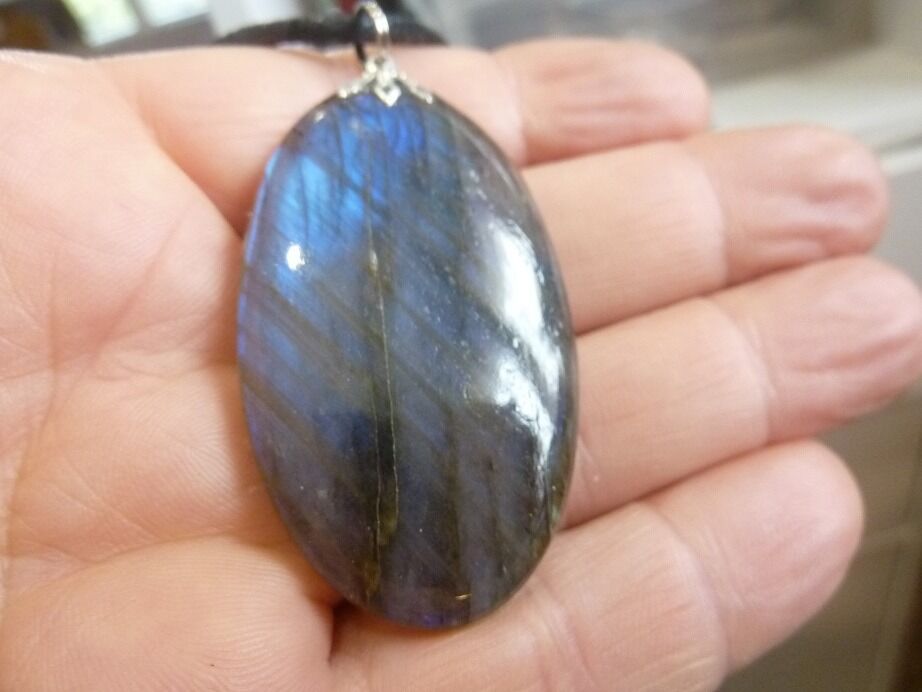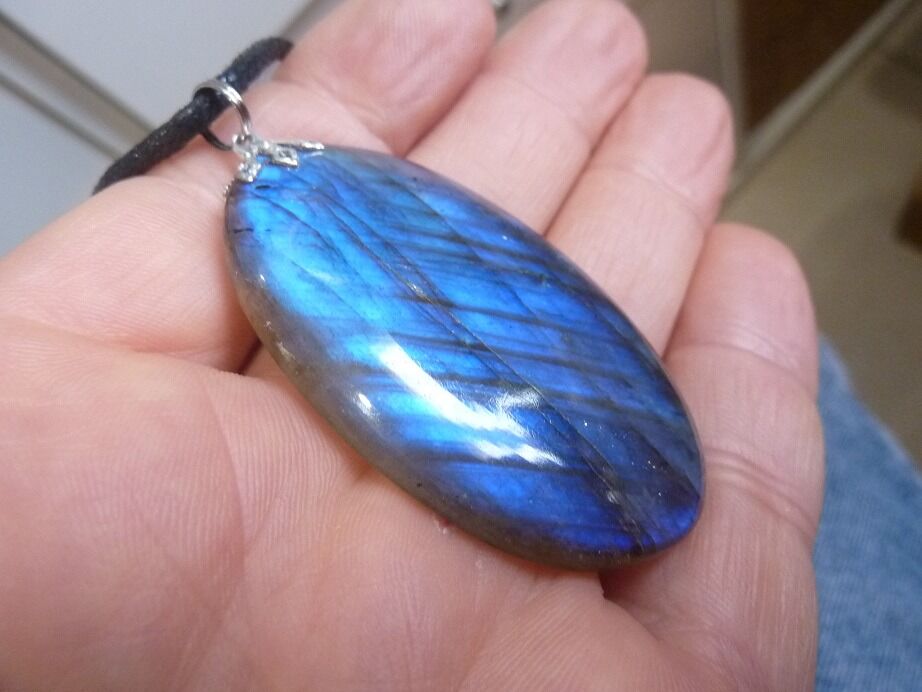 Livré avec collier cordon en coton ciré solide et durable longueur 58 cm + 4 cm ,comme les autres pendentifs en Labradorite du site !