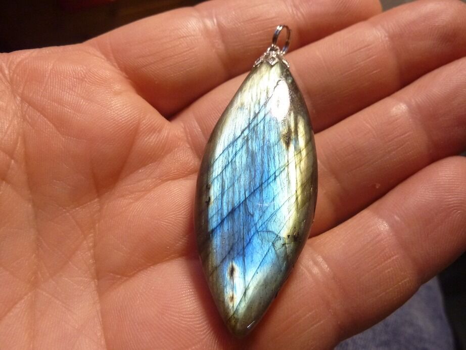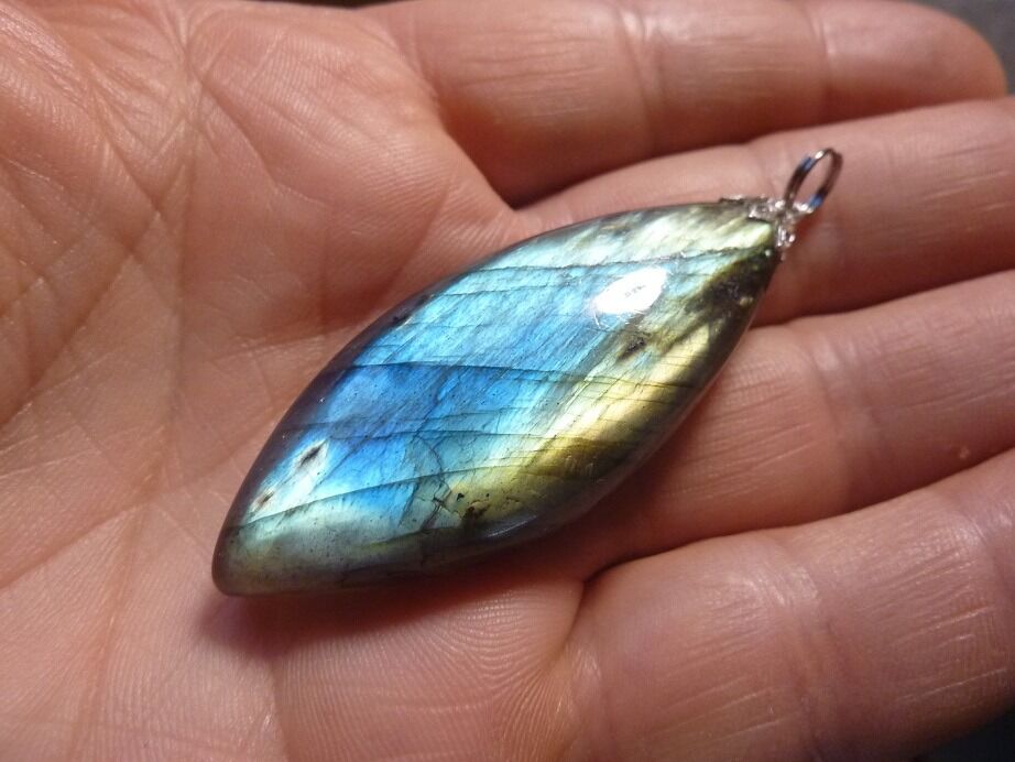• L’étonnante labradorite favorise l’activation du Troisième Œil, ce qui a pour effet de dissiper le voile sombre des illusions provenant des émotions inappropriées ou des fausses croyances.