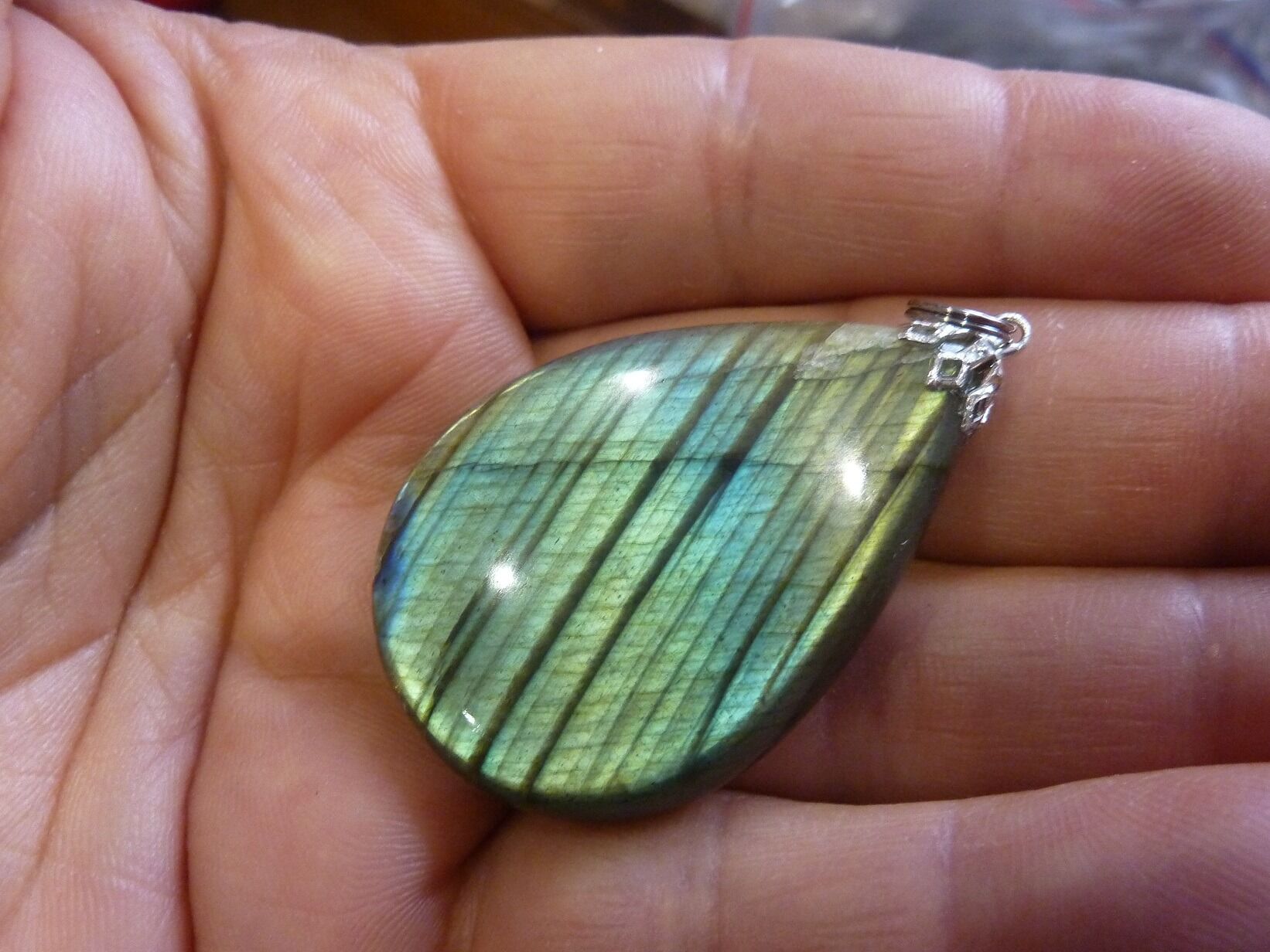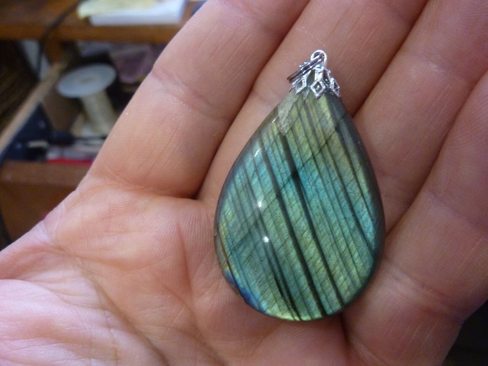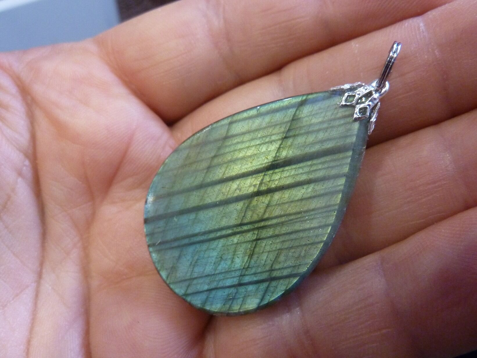 Livré avec collier cordon en coton ciré solide et durable longueur 58 cm + 4 cm ,comme les autres pendentifs en Labradorite du site !