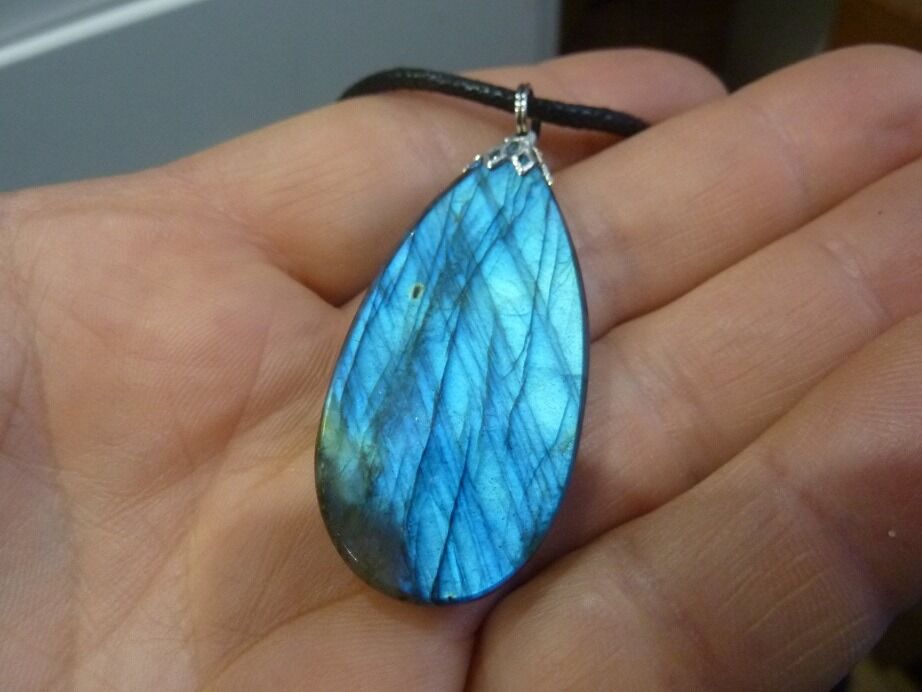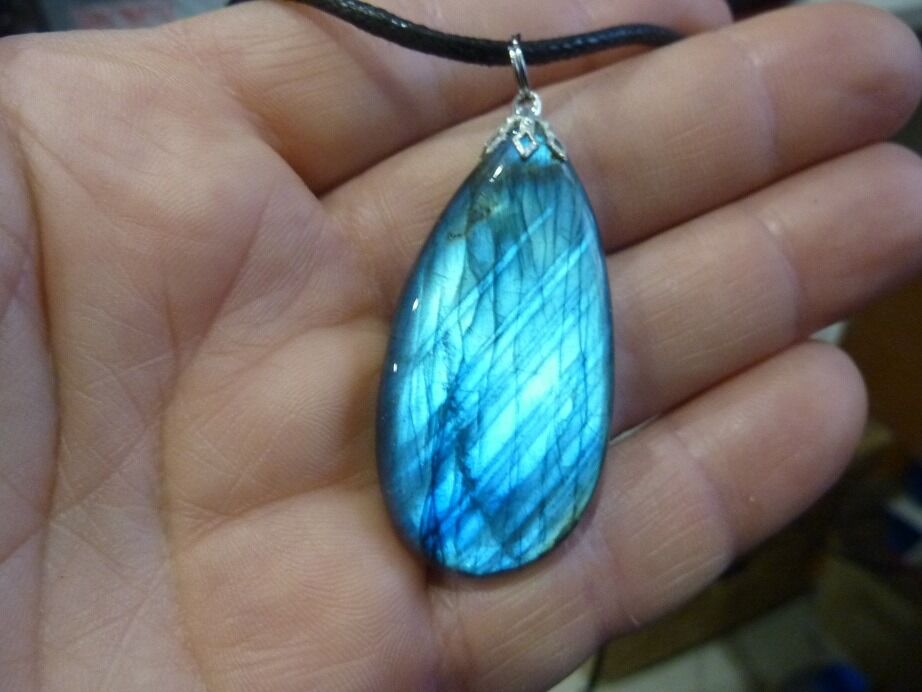 1. Livré avec collier cordon en coton ciré solide et durable longueur  58 cm + 4 cm ,comme les autres pendentifs en Labradorite du site !
