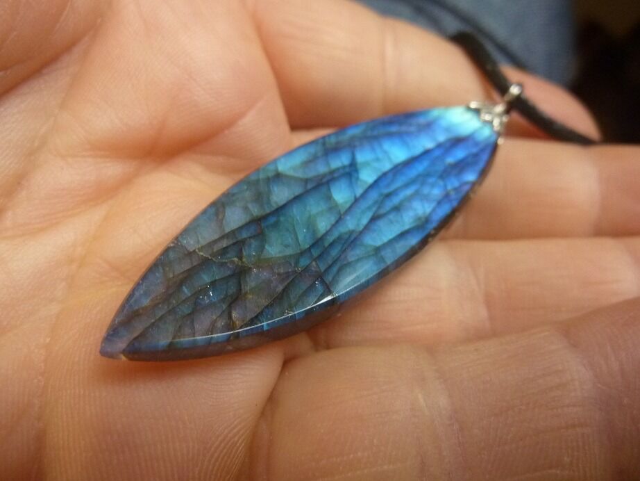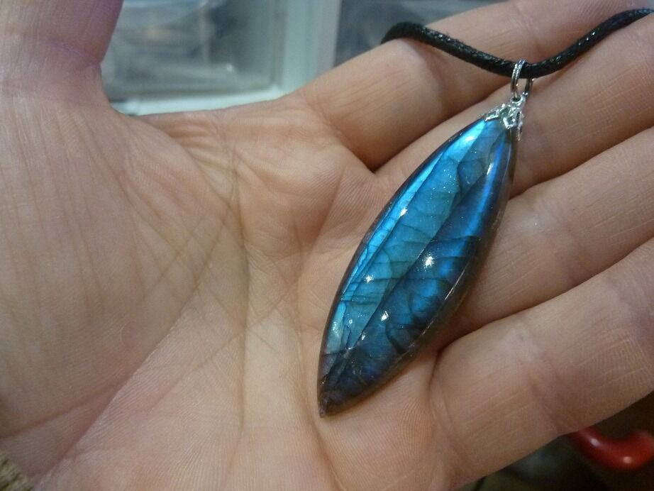 Livré avec collier cordon en coton ciré solide et durable longueur 58 cm + 4 cm ,comme les autres pendentifs en Labradorite du site !