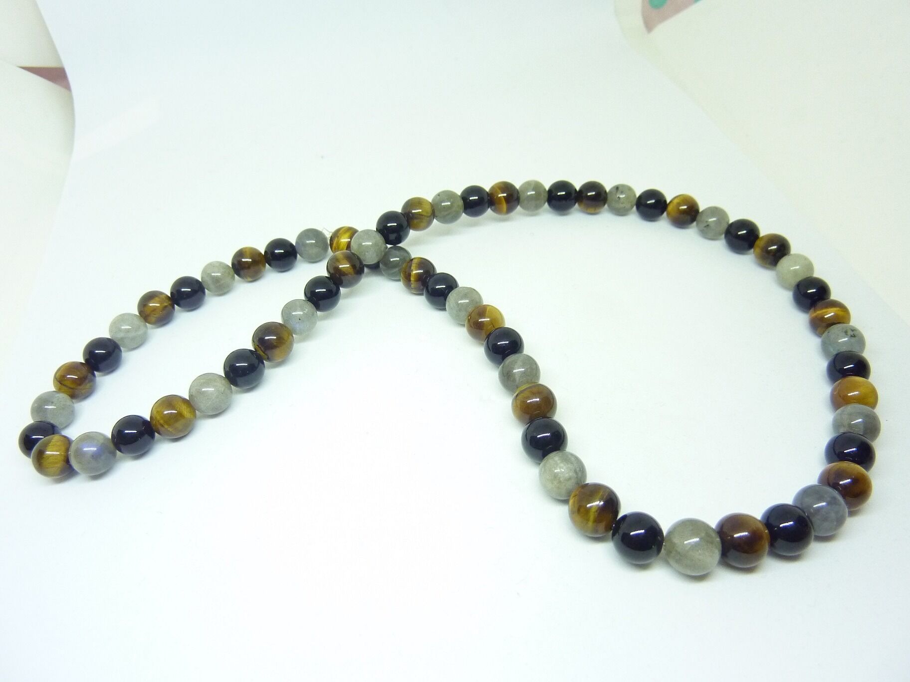 VOUS RECEVREZ UN COLLIER PROTECTION EXTREME OEIL DE TIGRE-LABRADORITE-TOURMALINE NOIRE 8 MM DE QUALITé SIMILAIRE
