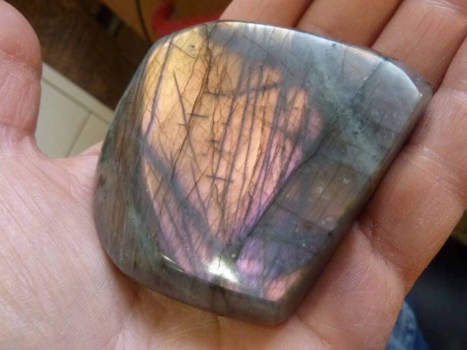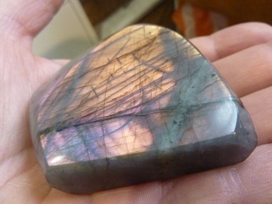 La Labradorite violette mauve, très puissante, ouverture des sphères supérieur, du chakra coronal. Du troisième oeil, sagesse, paix aussi de l’esprit, très protectrice et malheureusement très rare.