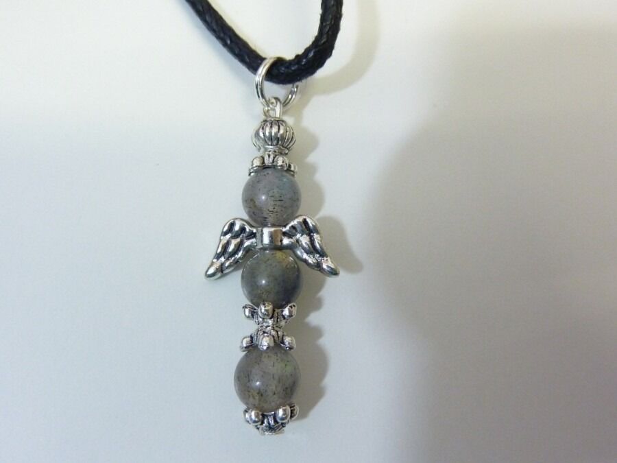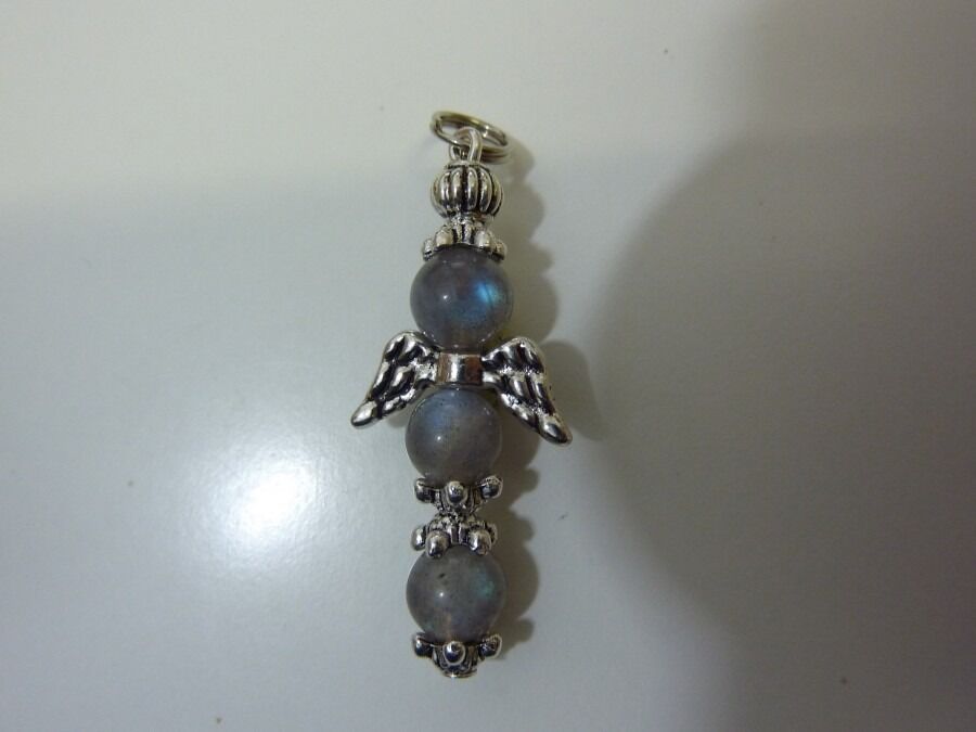 PENDENTIF ANGE CROIX LABRADORITE 6 MM & ARGENT DU TIBET