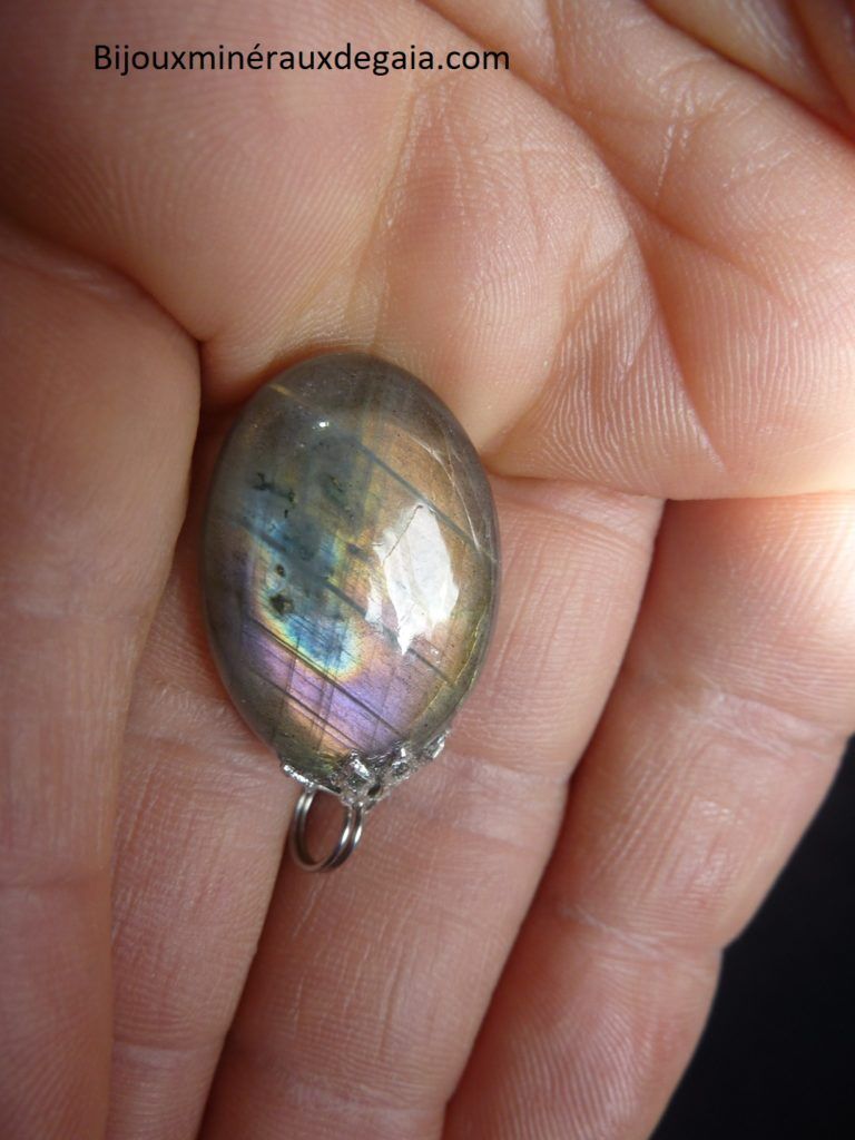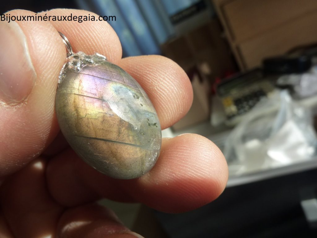 Pendentif Labradorite orange-violette Rare ! Poids 6 gr ref 5358