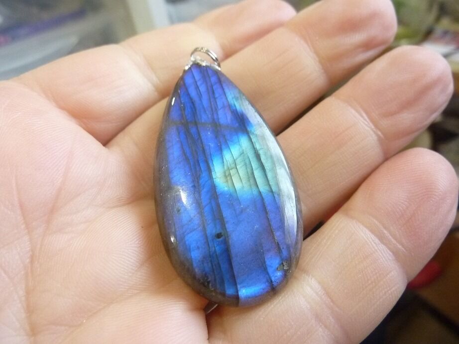 - L’étonnante labradorite favorise l’activation du Troisième Œil, ce qui a pour effet de dissiper le voile sombre des illusions provenant des émotions inappropriées ou des fausses croyances.