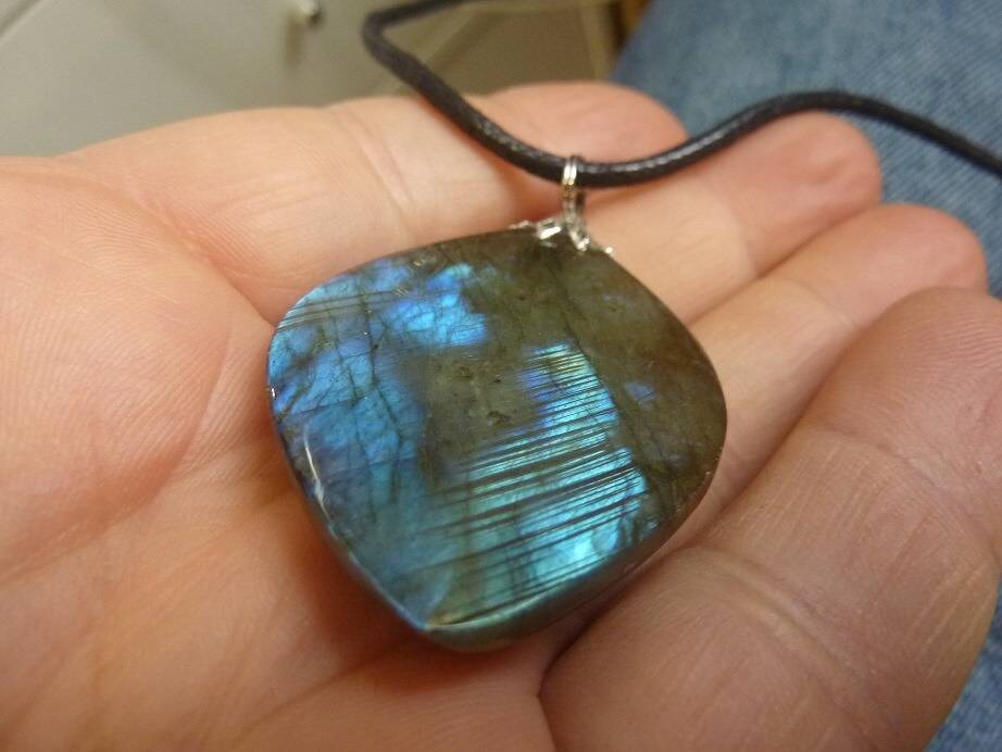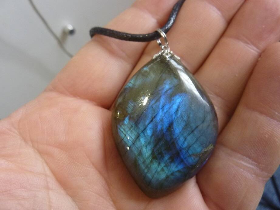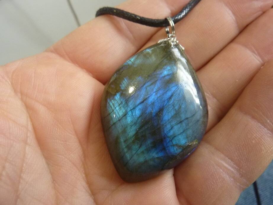 Livré avec collier cordon en coton ciré solide et durable longueur 58 cm + 4 cm ,comme les autres pendentifs en Labradorite du site !