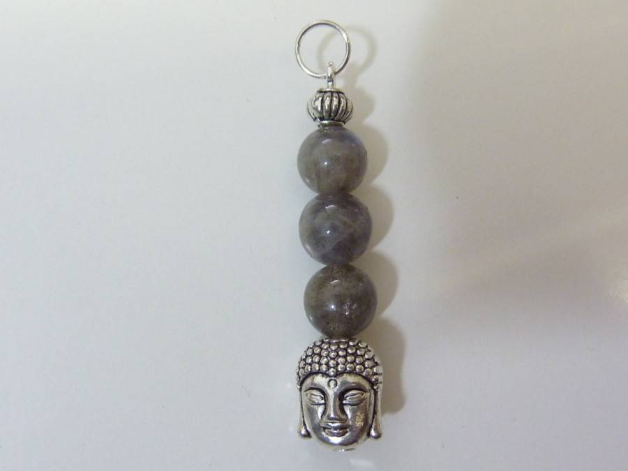 Pendentif protection Bouddha Labradorite perles 6mm longueur 3,6 cm