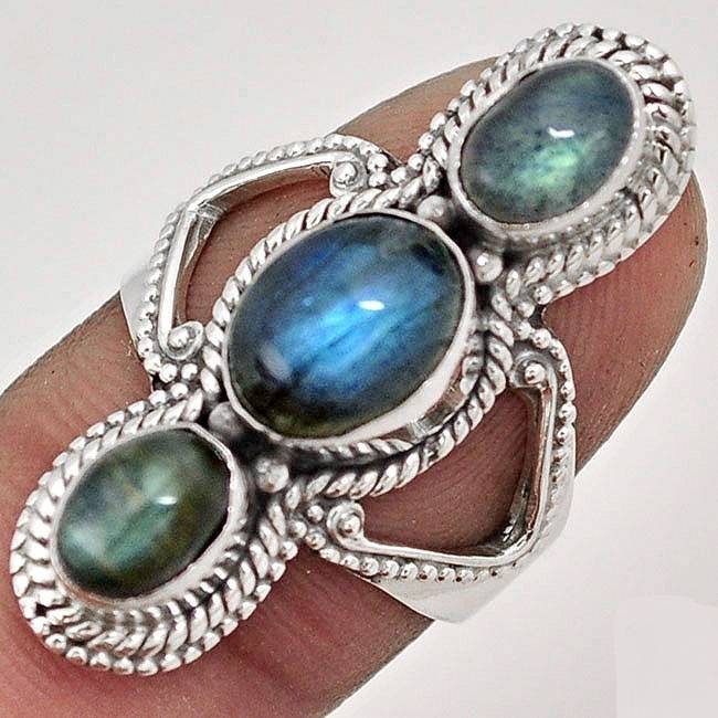 SUBLIME BAGUE EN LABRADORITE & ARGENT 925 TAILLE 55 1/4 ref 8223