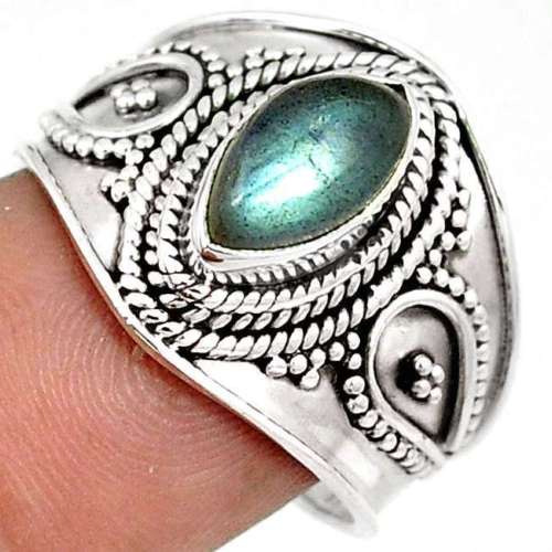 SUBLIME BAGUE PROTECTION LABRADORITE & ARGENT 925 TAILLE 56 1/2 ref 3674