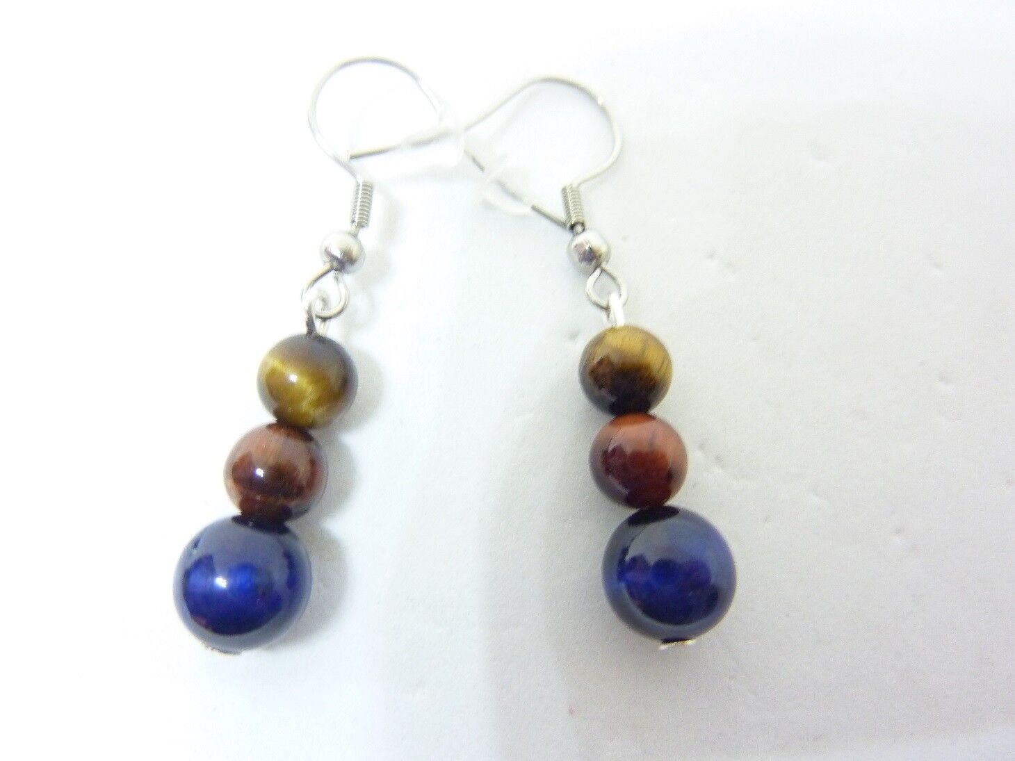 Plan physique pour ces Boucles d’oreilles Oeil de tigre-oeil de Faucon-oeil de Taureau