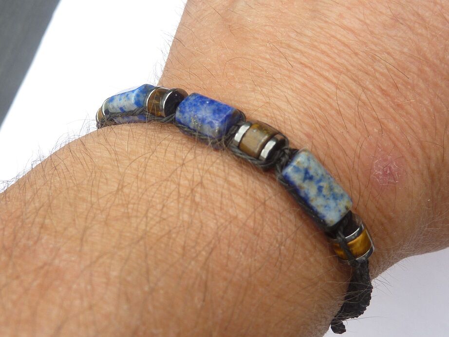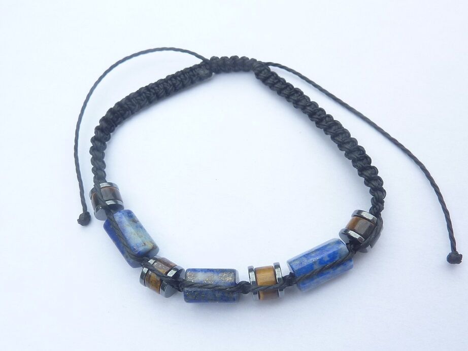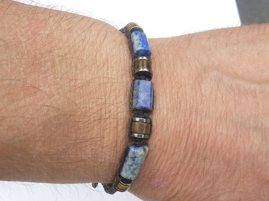 Bracelet réglable Oeil de tigre-Lapis lazuli-Hématite