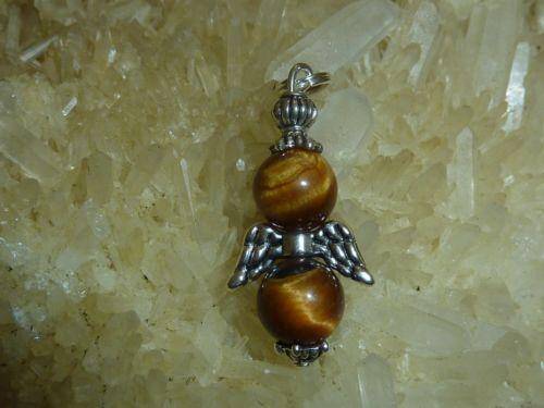 - PENDENTIF OEIL DE TIGRE ET PERLE AILES D’ANGE EN PLAQUé ARGENT