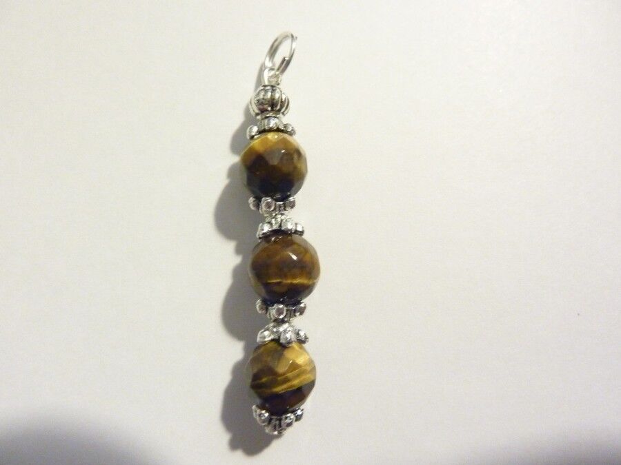 PENDENTIF PROTECTION OEIL DE TIGRE PERLES 8MM A FACETTES