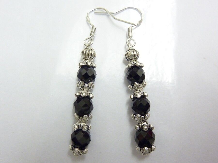 BOUCLES D’OREILLES PROTECTION SPINELLE NOIR PERLES 6MM