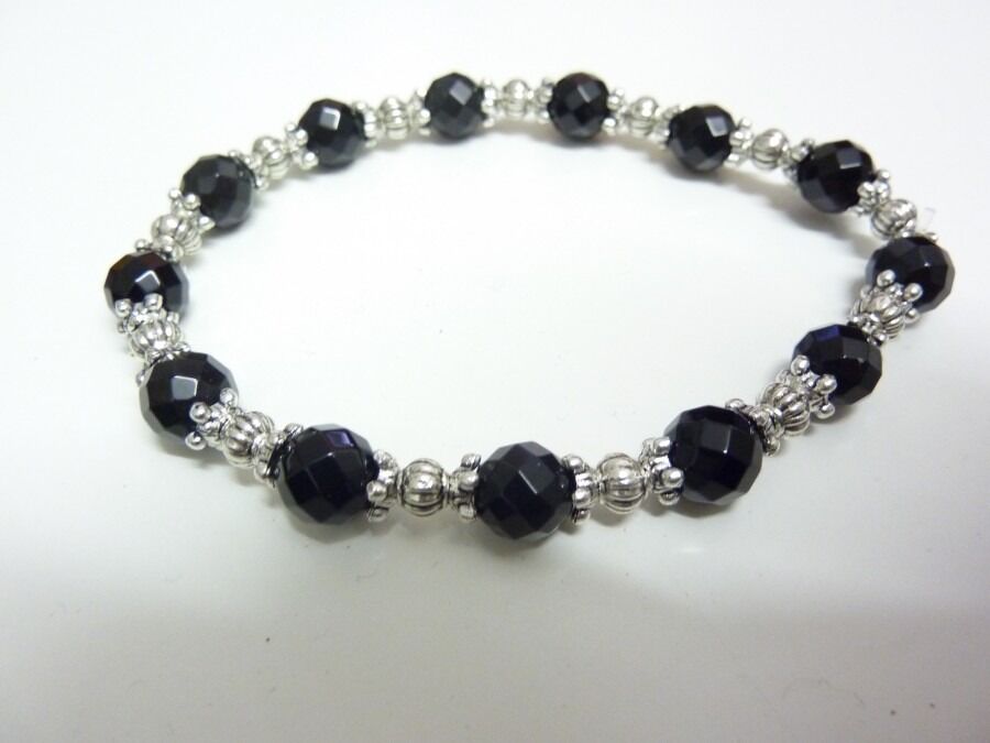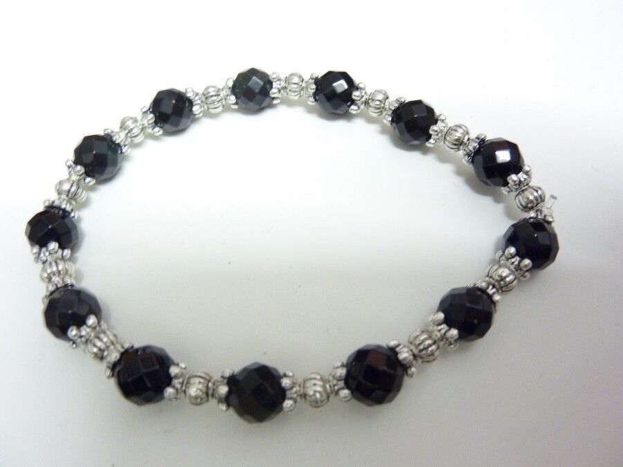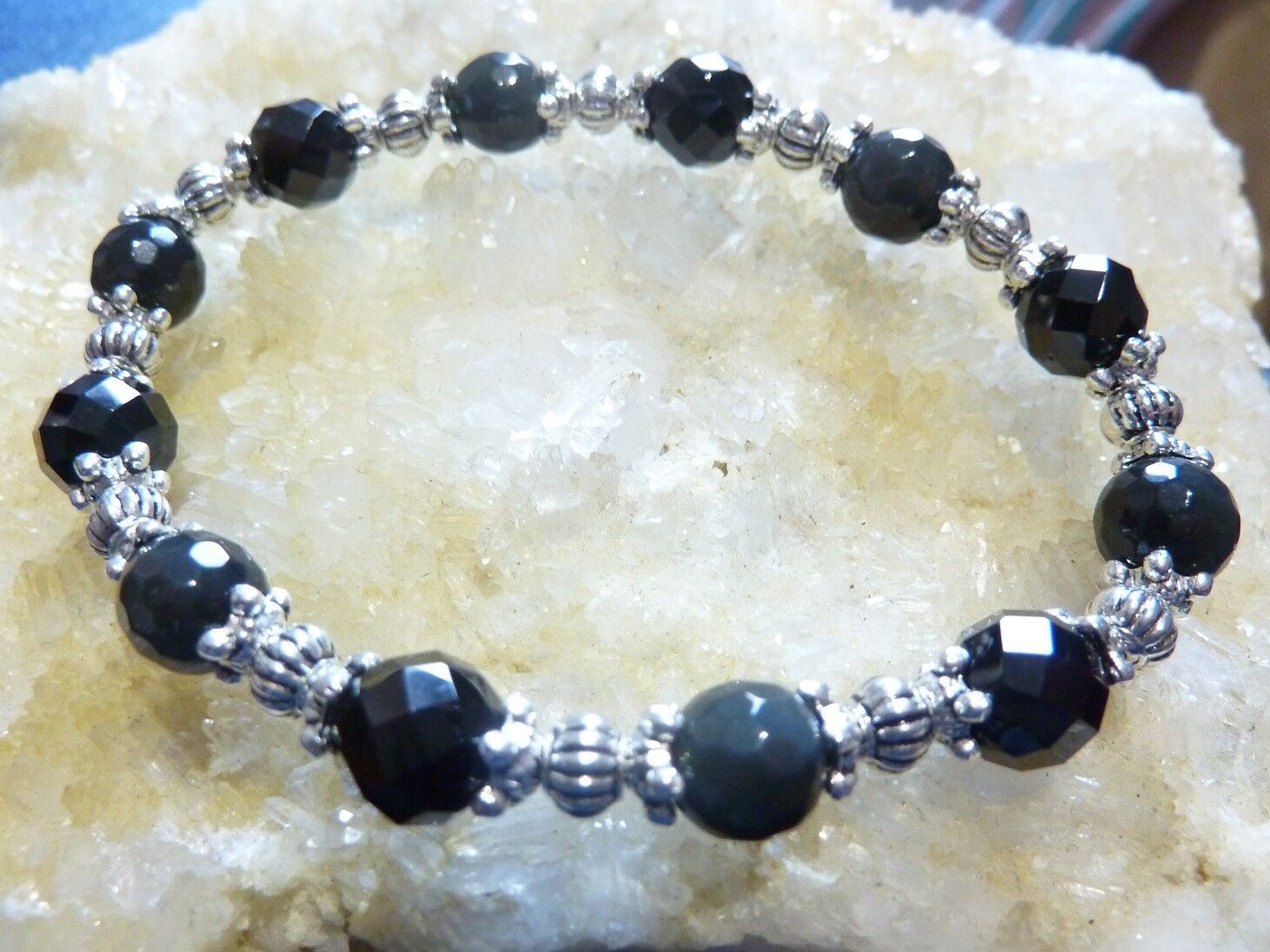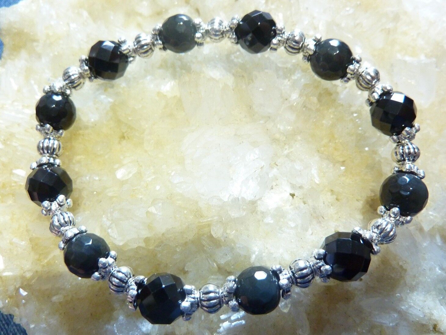 - Perles Spinelle noir et obsidienne oeil céleste à facettes de 8 mm de diamètre en alternance