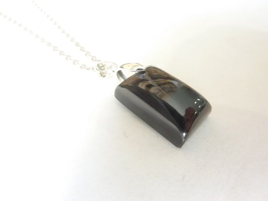 Pendentif Spinelle noir argent 925 gg 0810 + chaine acier inoxydable 50 cm