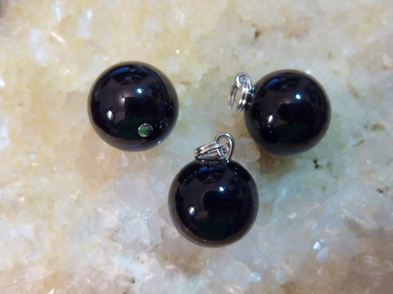 Pendentif spinelle noir : Perle ronde 14 mm à l’unité