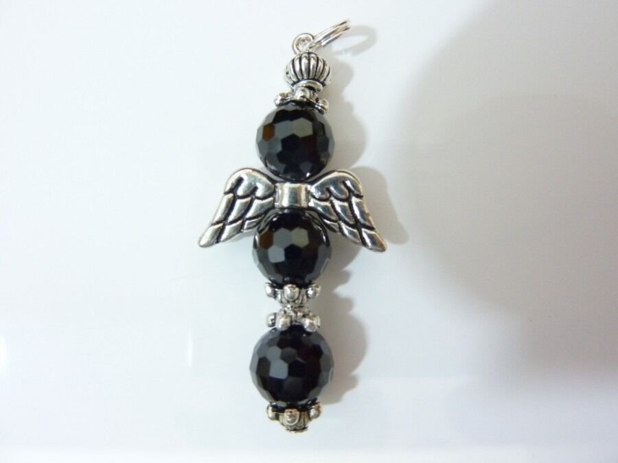 PENDENTIF SPINELLE NOIR PROTECTION ANGE CROIX
