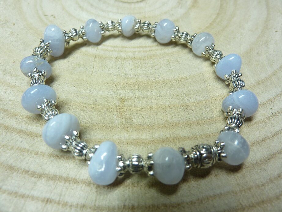 Bracelet Calcedoine Bleue Et Perles En Plaqué Argent