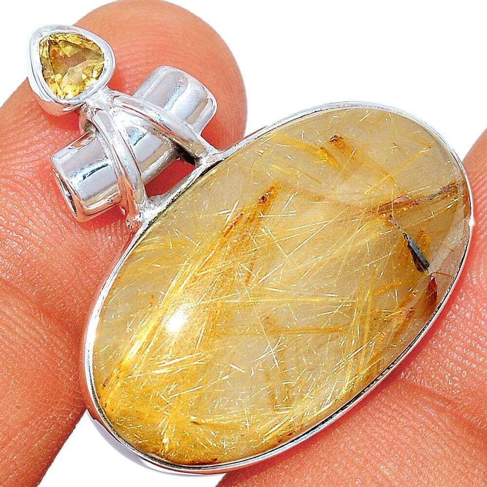 Vous recevrez le Pendentif Quartz rutile-Citrine Monture en argent 925 ref 0158 pris en photo