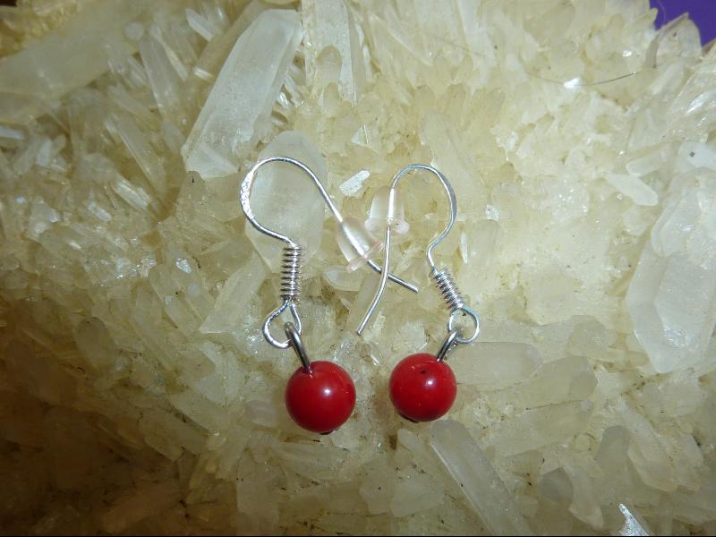 Boucles d’oreilles corail rouge perles rondes 5 mm