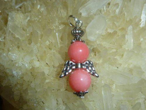 Pendentif ailes d’ange en pierres naturelles en corail rose perles rondes 8mm