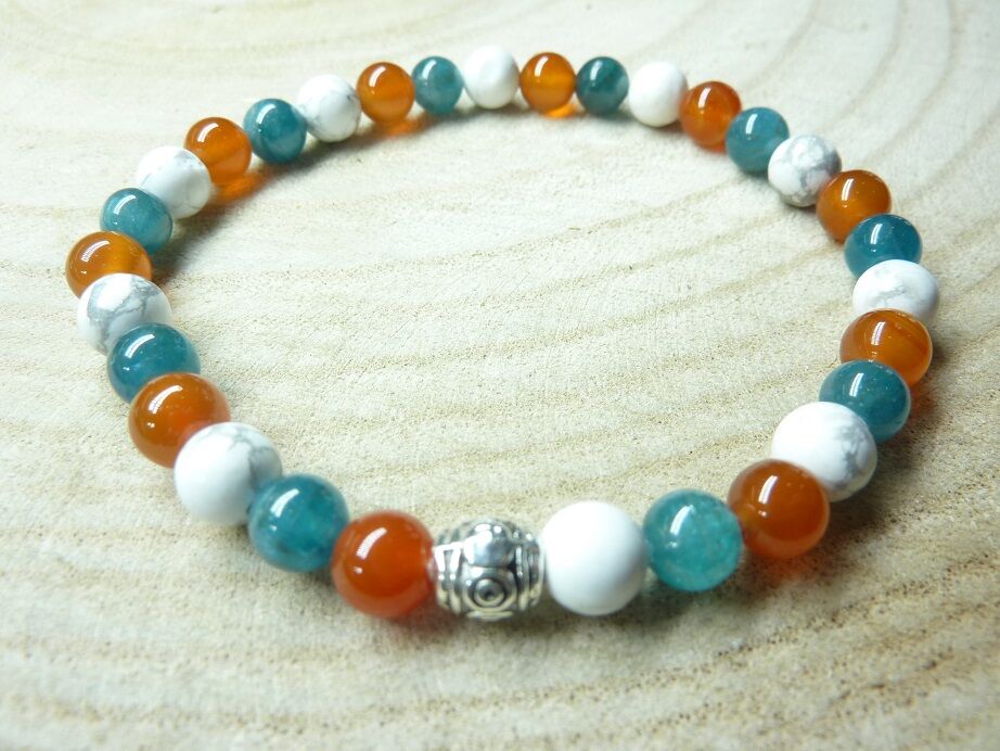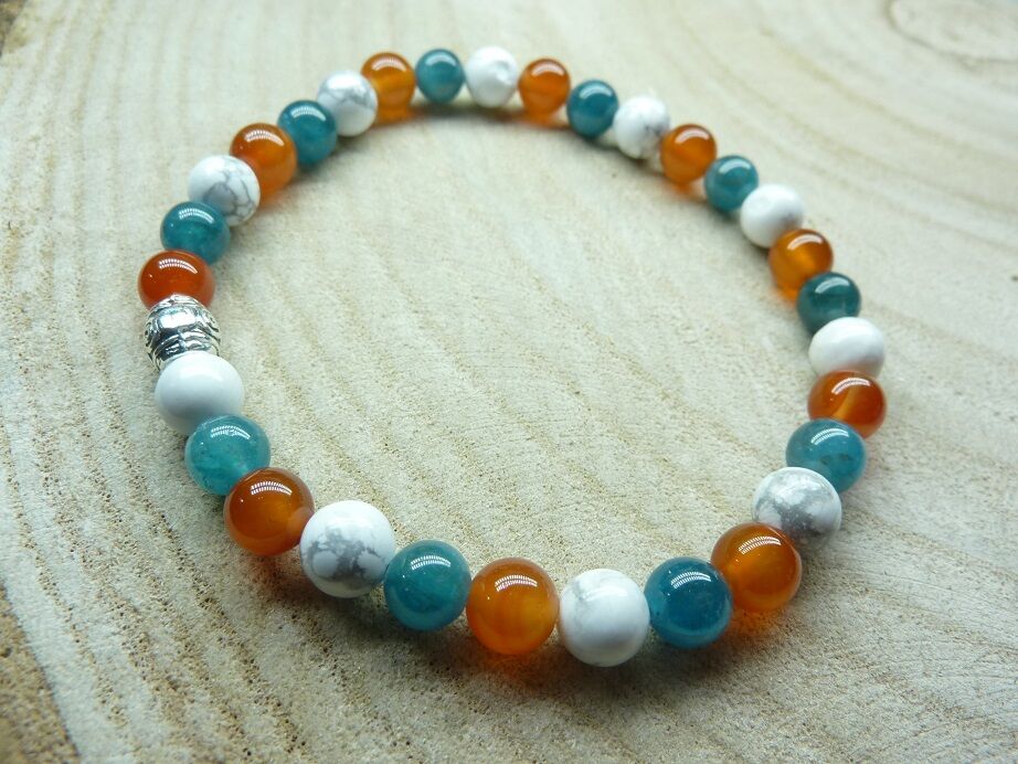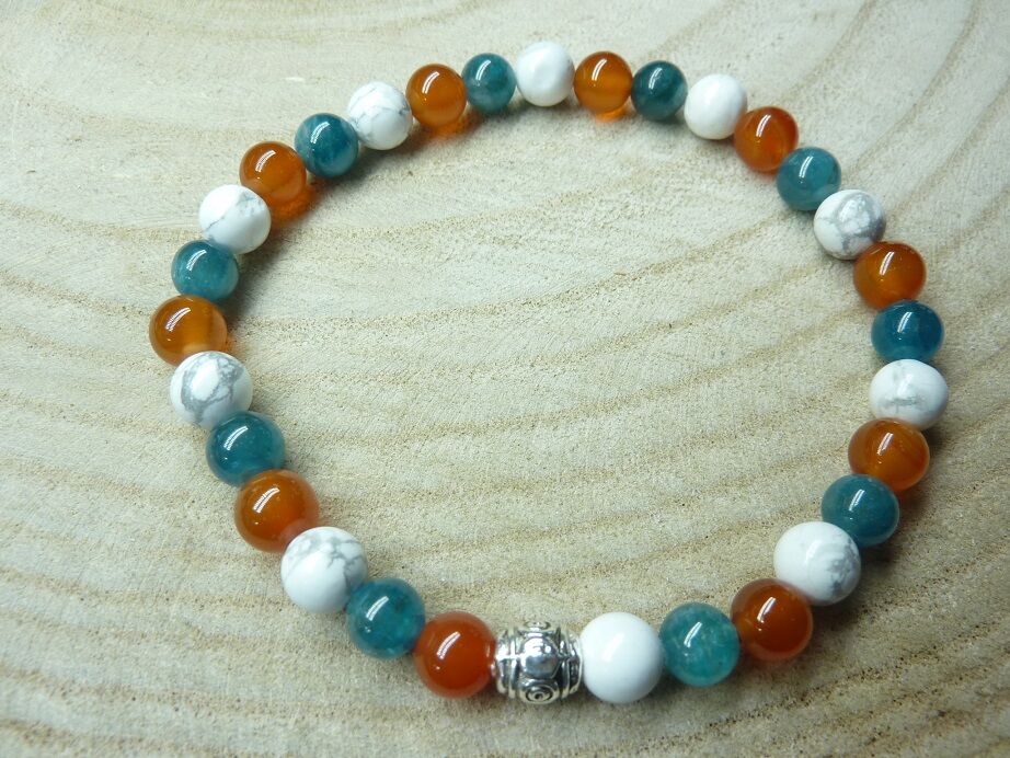 Bracelet Apatite-Cornaline-Howlite – perles rondes 6 mm