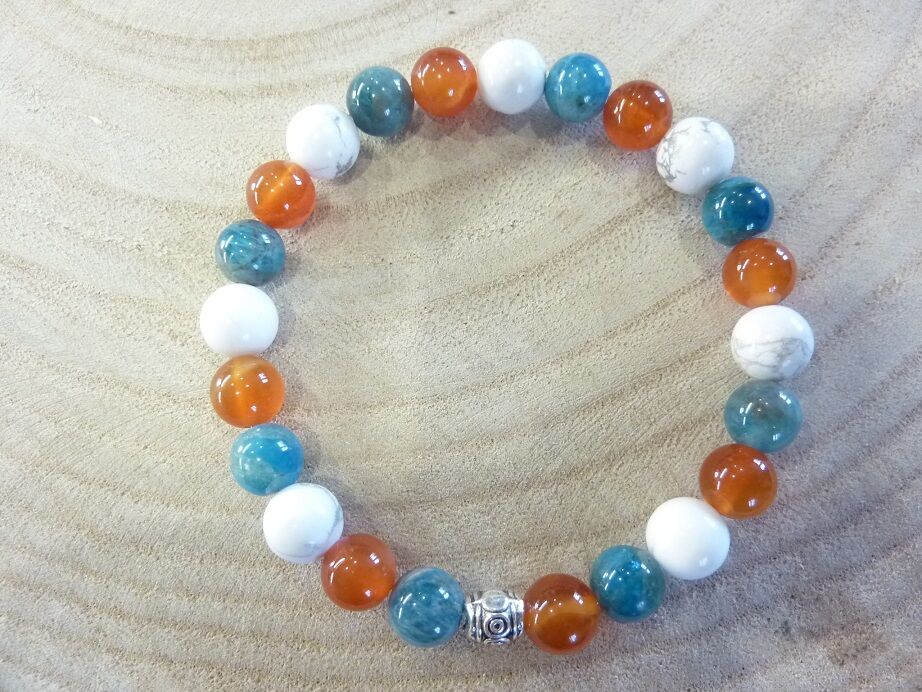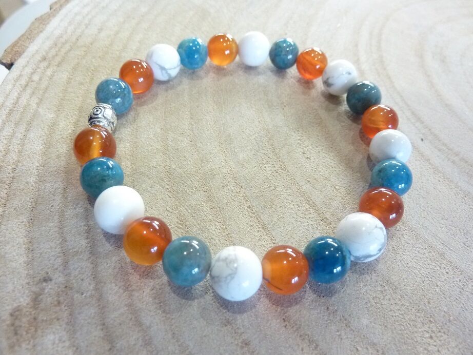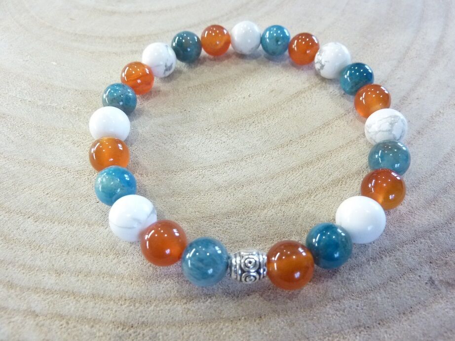Bracelet Apatite-Cornaline-Howlite – perles rondes 8 mm