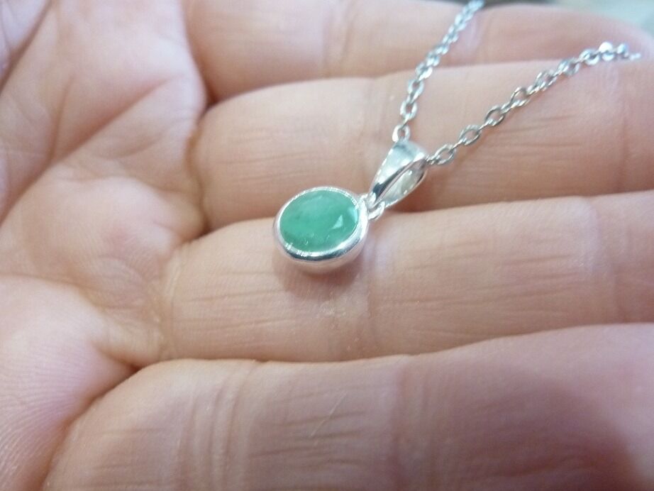 pendentif Emeraude monture argent 925 GG 010 + chaine acier inoxydable 45 cm