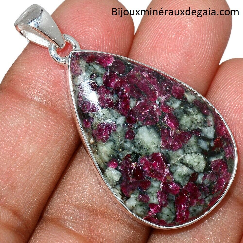 L’eudialyte, est une pierre exceptionnelle du groupe des silicates découverte au Groenland. Son nom provient d’un mot grec qui signifie facilement décomposable à cause de sa composition soluble dans l’acide. Ce minéral naturel a une composition chimique complexe. Il contient du calcium, du manganèse, du cyclosilicate de sodium, du fer, du cérium et du zirconium.