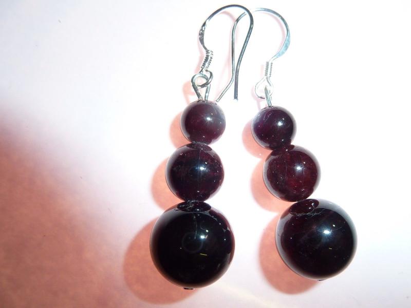 Boucles d’oreilles grenat almandin perles rondes 10-8-6mm