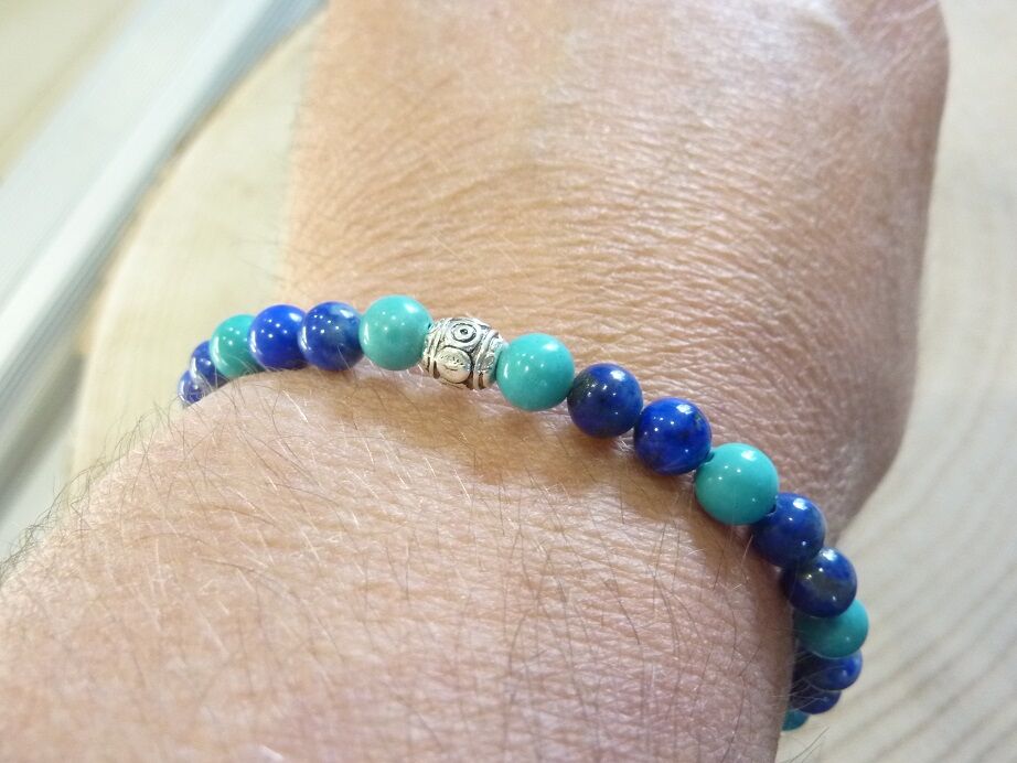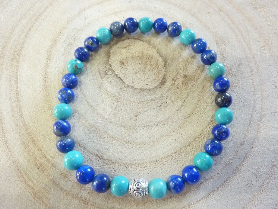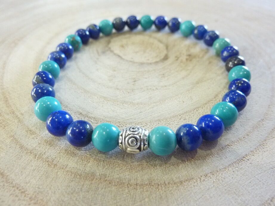 Le bracelet Lapis lazuli–Turquoise est un bijou d’une beauté envoûtante qui associe les propriétés uniques de ces deux pierres précieuses.