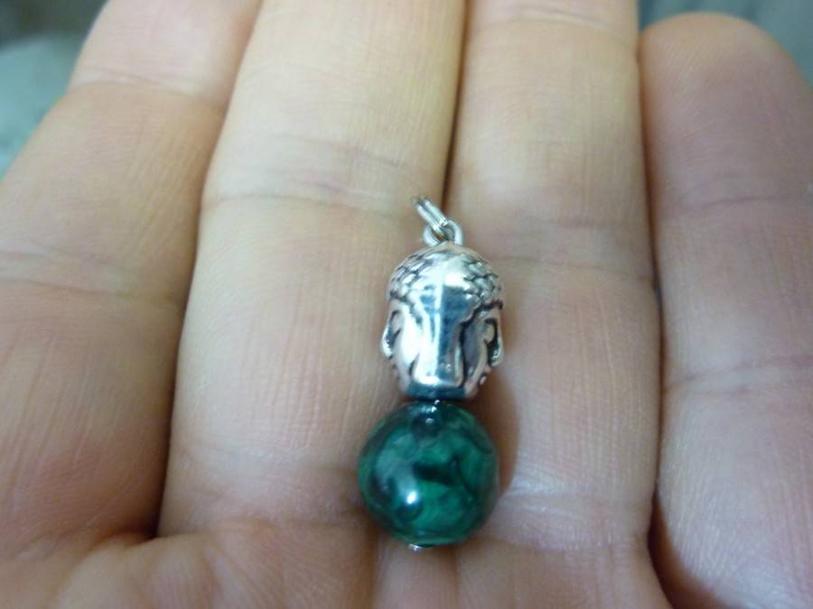 Pendentif Bouddha malachite perles 10mm longueur 2,7 cm