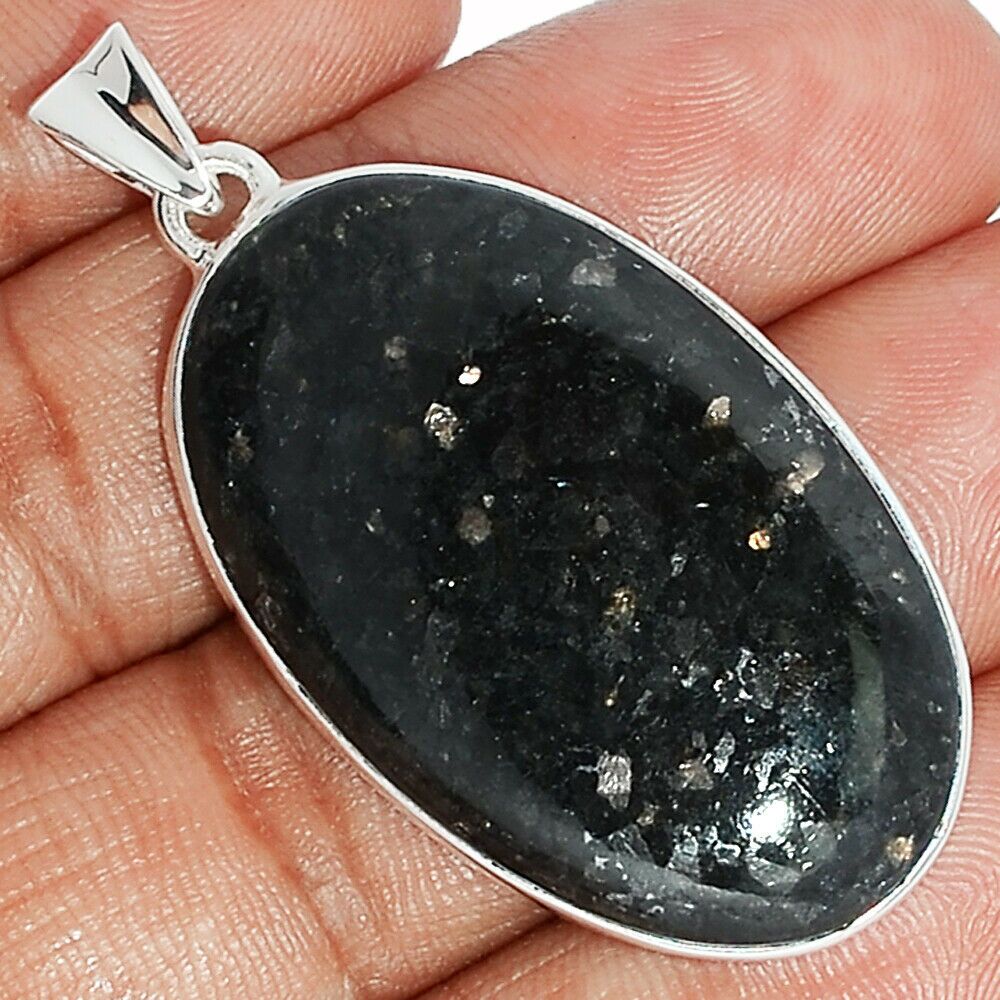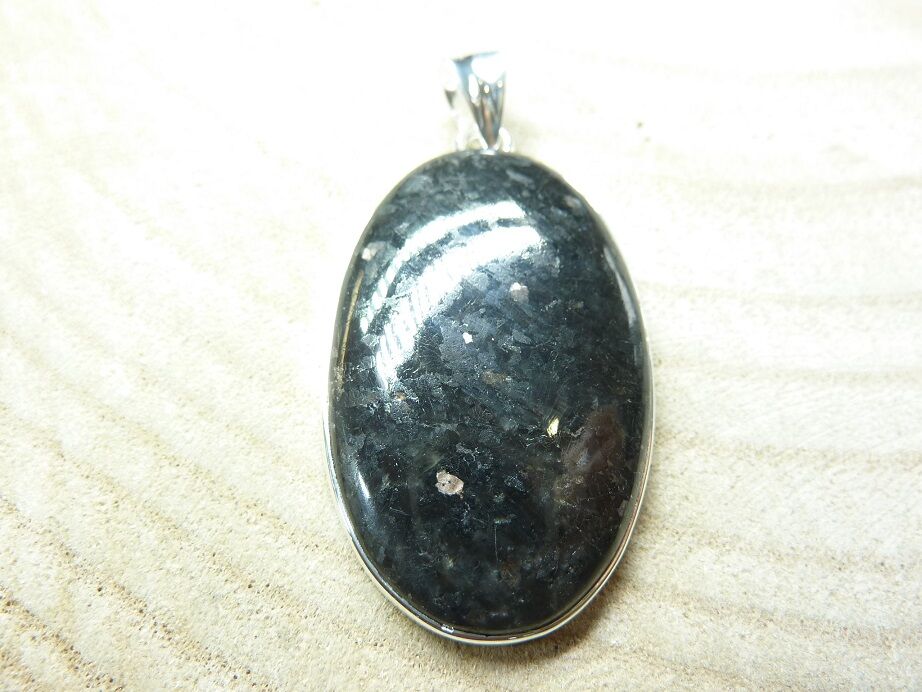 Pendentif Nuummite Véritable monture argent 925 Rare ref 0094