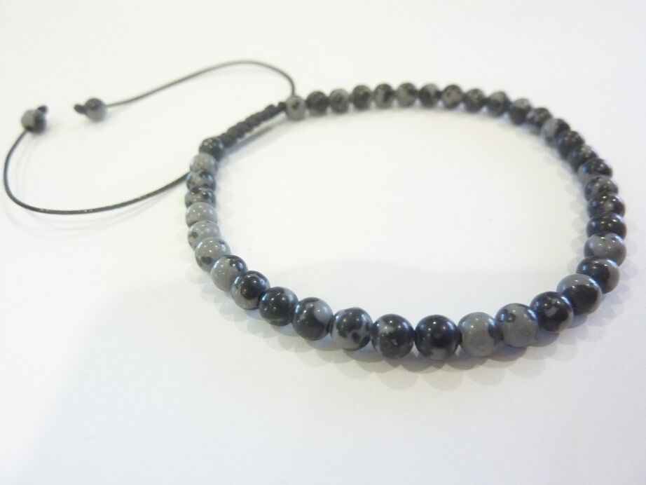 Bracelet réglable Obsidienne neige-Perles rondes de 4 mm
