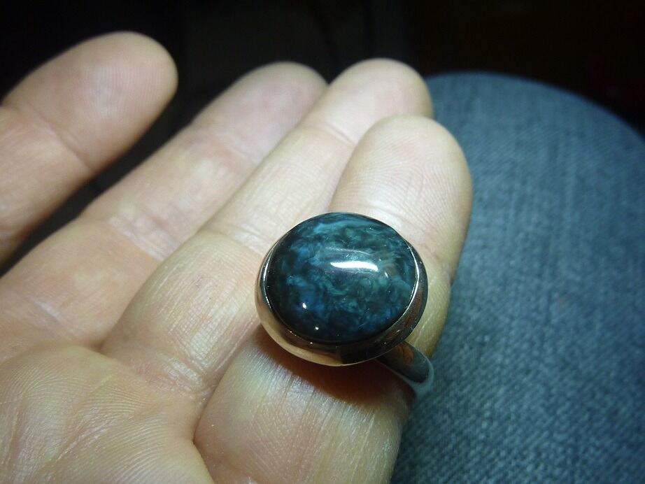 Les photos sont prise avec une lampe torche pour montrer ses couleurs , sinon la pierre est plutôt de couleur noir