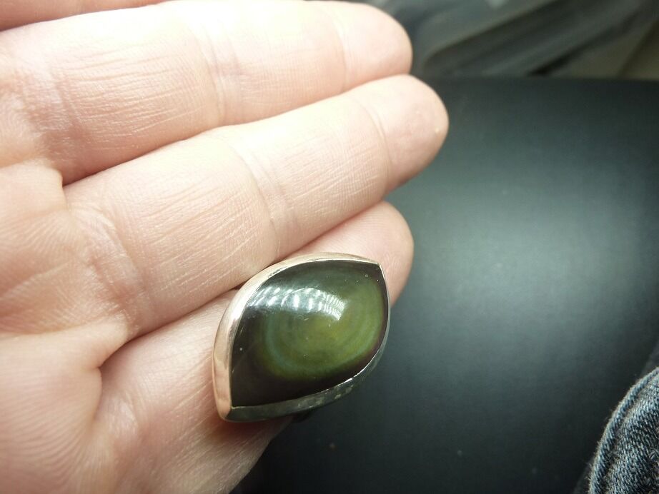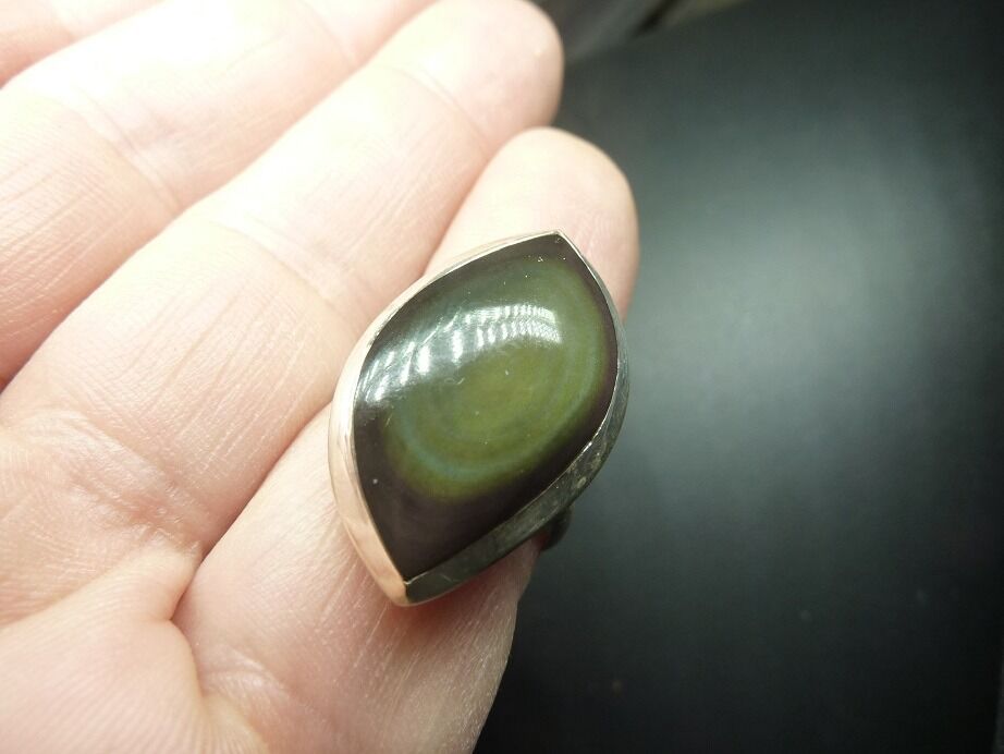 Bague Obsidienne oeil céleste argent 925 taille réglable ref 0710