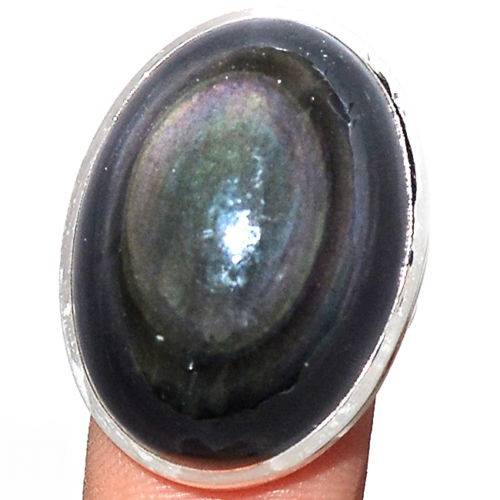 Bague protection obsidienne oeil celeste argent 925 taille 55 1/4 ref 8861