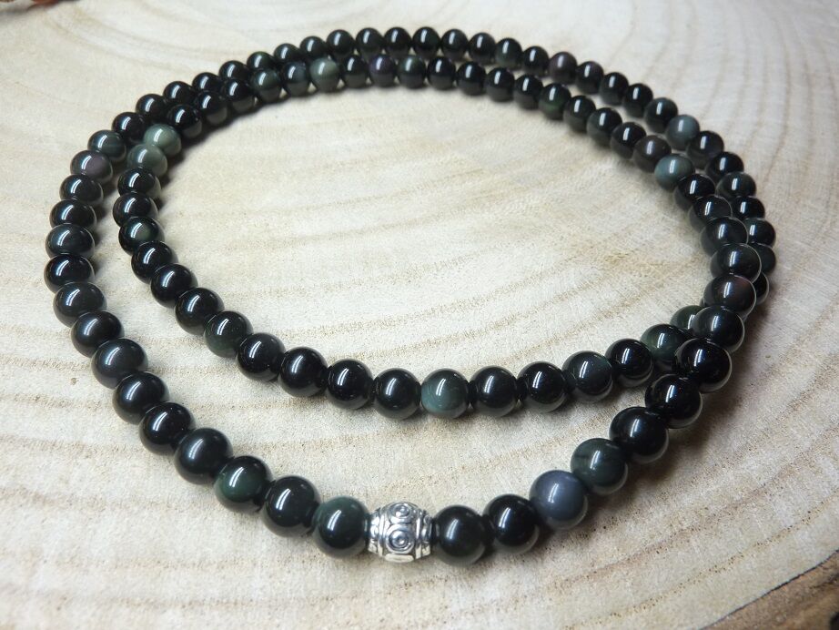 COLLIER OBSIDIENNE OEIL CELESTE PERLES 6MM