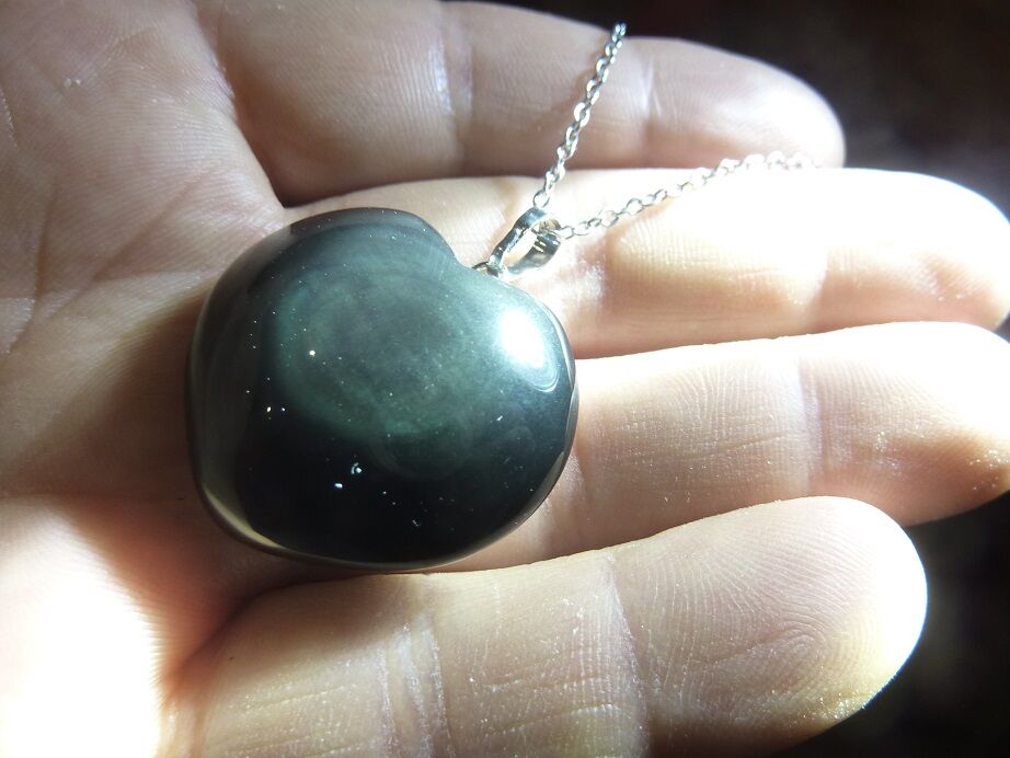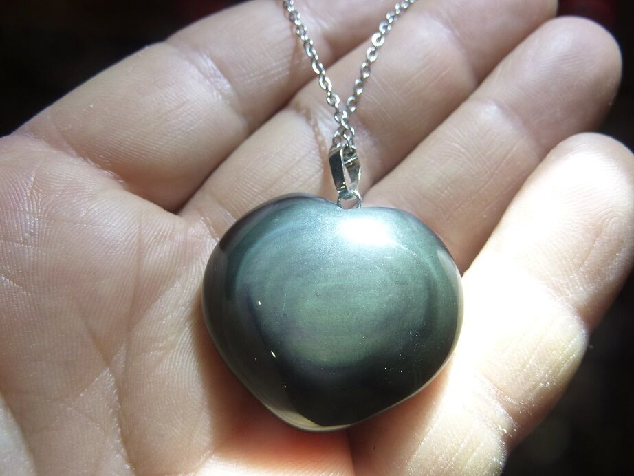 Vous recevrez le Pendentif coeur Obsidienne oeil céleste argent 925 ref 1107 + chaine acier inoxydable 45 cm pris en photo