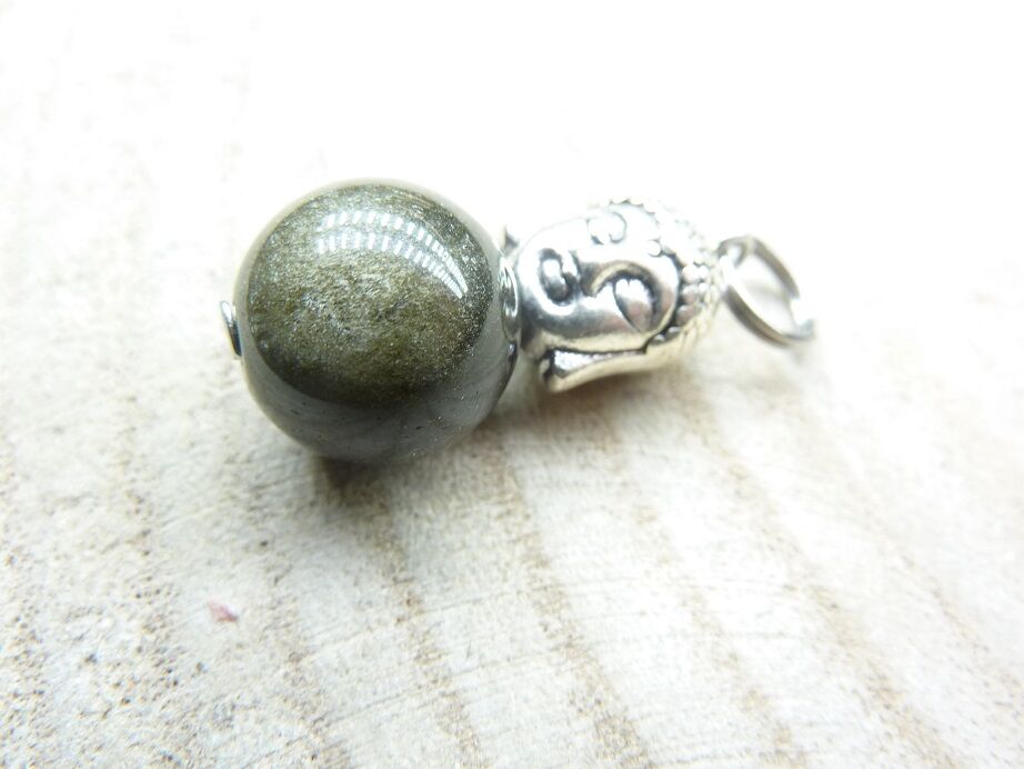 Vous recevrez un Pendentif Obsidienne dorée-Bouddha Perles 10 mm de qualité similaire