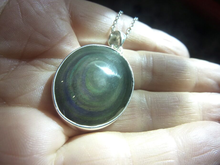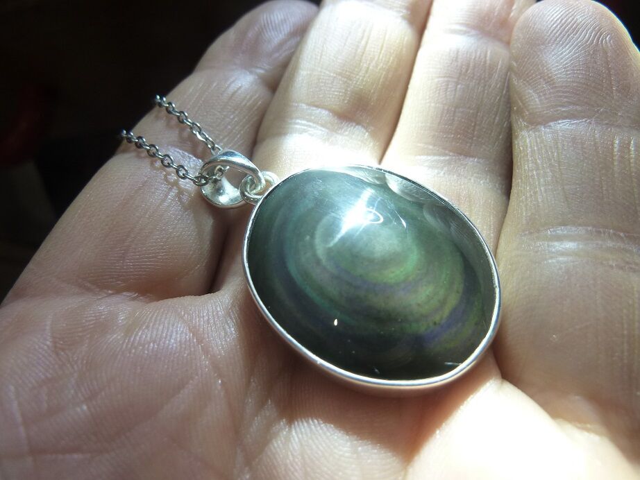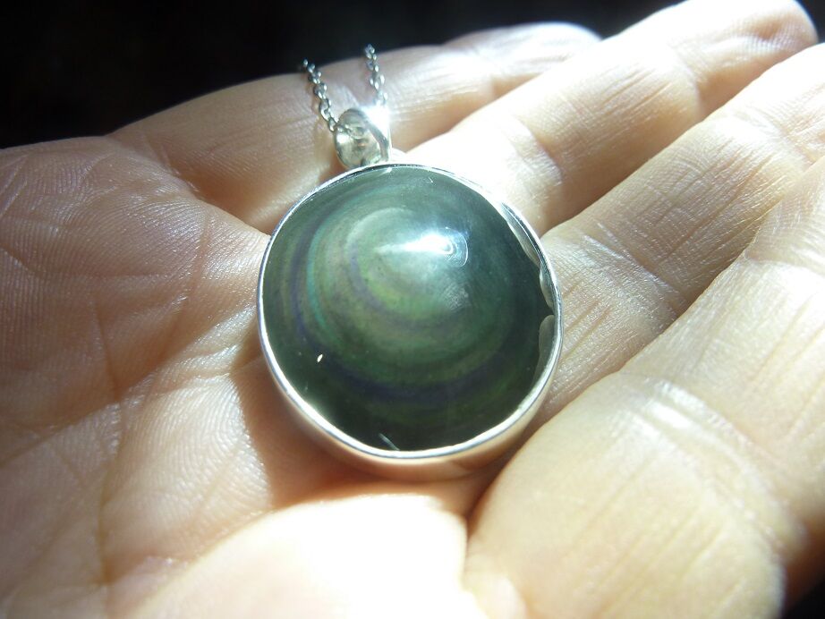 Pendentif Obsidienne oeil céleste argent 925 GG 0409 + chaine acier inoxydable 50 cm