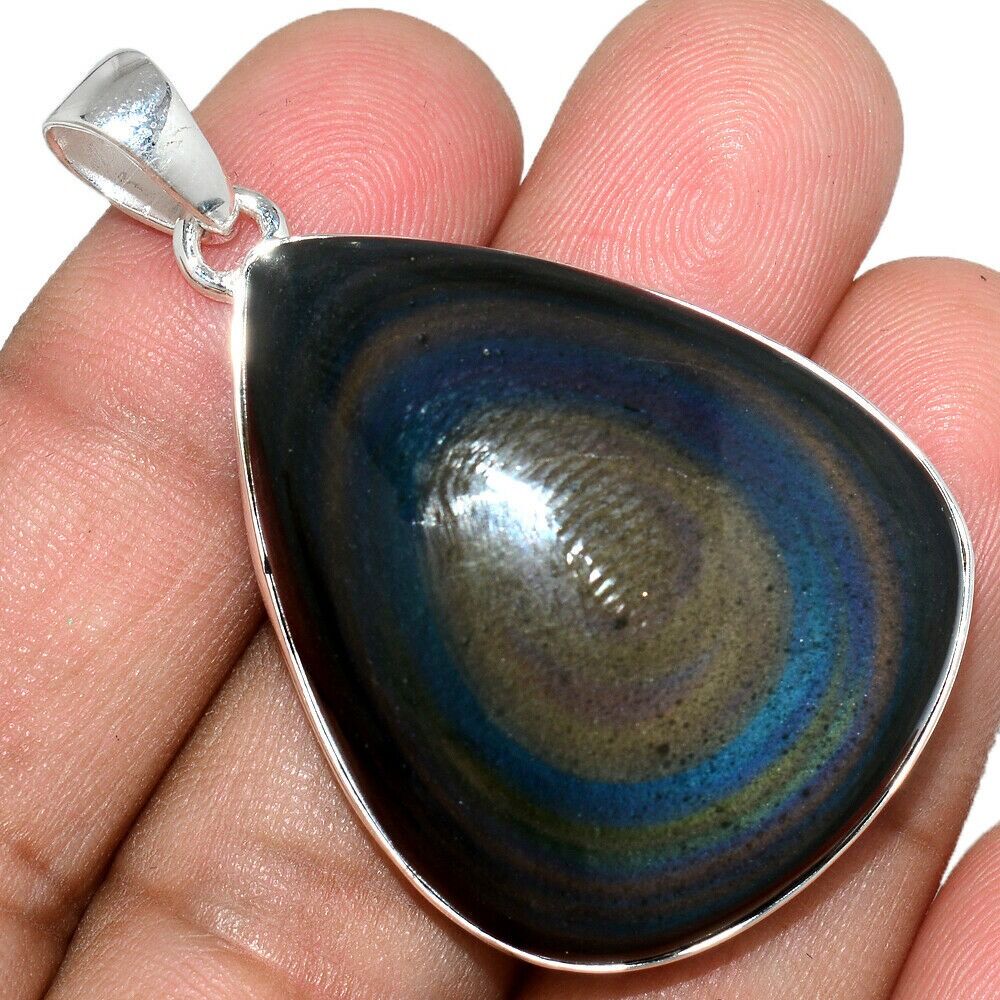 Pendentif Obsidienne oeil céleste monture argent 925 ref 4314