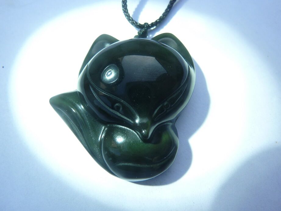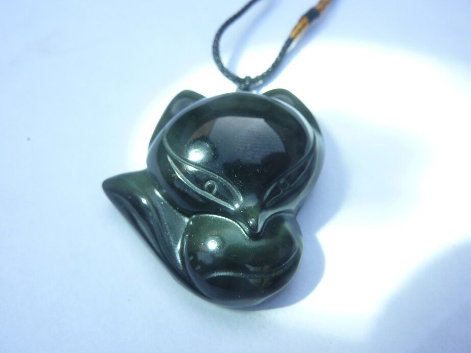 Pendentif Obsidienne oeil céleste renard