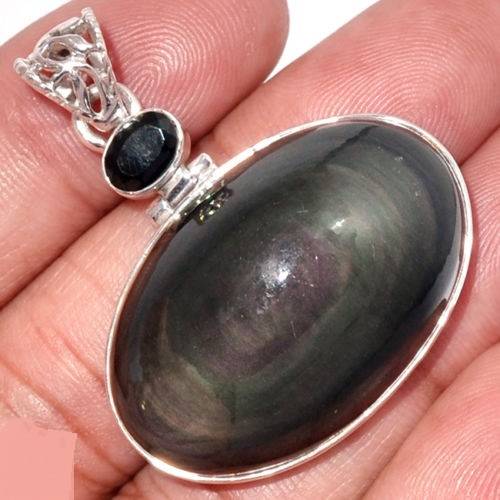 Pendentif protection obsidienne oeil celeste et onyx noir monture arg925 6237