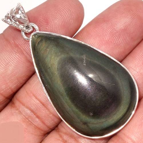 Pendentif protection obsidienne oeil celeste monture argent 925 r 5027