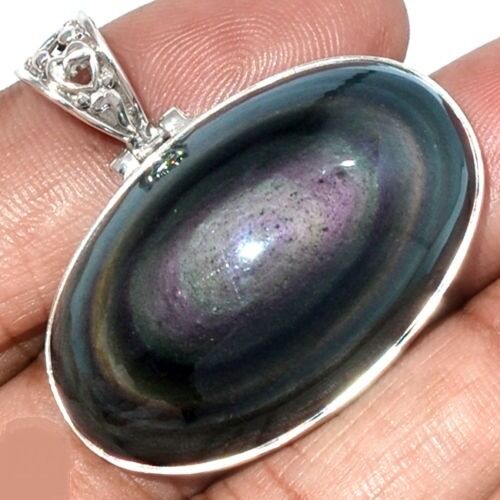 Pendentif protection obsidienne oeil celeste monture argent 925 ref 9930