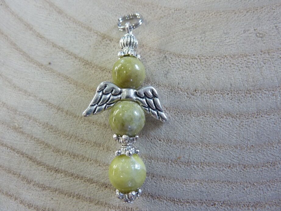 Pendentif Péridot croix ange – Perles rondes 8 mm