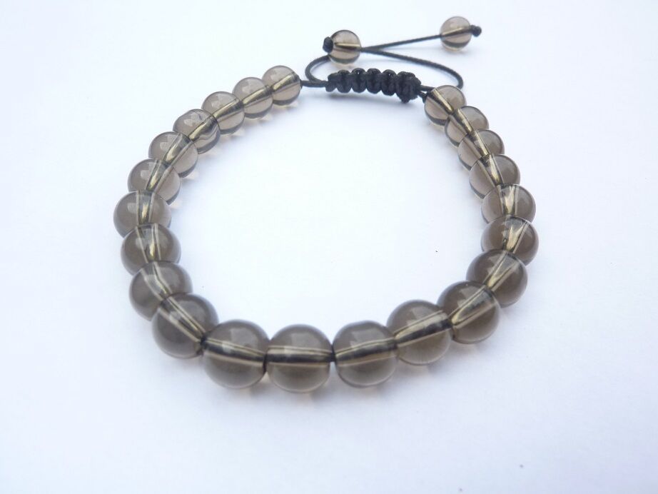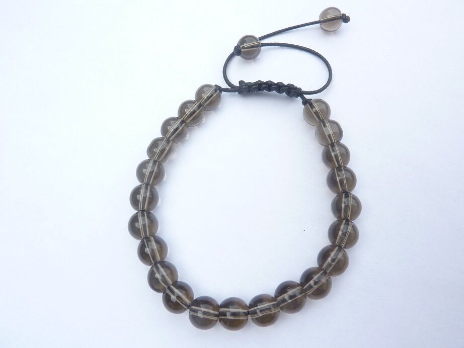 Bracelet réglable Quartz fumé-Perles rondes 8 mm